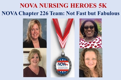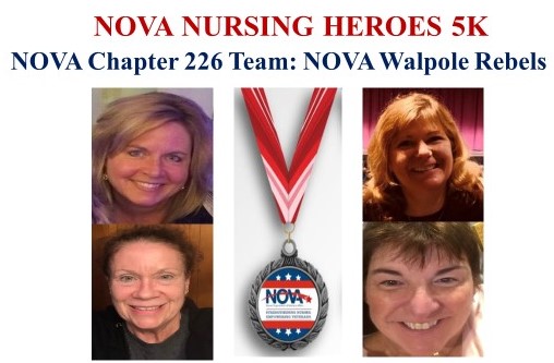 1st Virtual NOVA Nursing Heroes 5K Three NOVA Chapter 226 Teams have registered for the virtual NOVA Nursing Heroes 5K from VA Boston! Not Fast but Fabulous: Kelly Skinner, Theresa Presley, Anastasia Aryee, and Danielle Newman; NOVA Chapter 226 Walpole Rebels: Karen Boenig, Linda Costello, Ellen McCarthy and Kelly Skinner; and Run Like the Winded: Julie Szegda, Cory Atkins, Carolyn Blackham, and Casey Atkins have their running shoes ready for walking! Support VA nurses by joining the 1st virtual NOVA Nursing Heroes 5K. Every registrant will get a custom NOVA medal. For more information go to: https://www.vanurse.org/page/NOVAVirtual5k