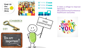 The Lake City VA Wound Team presented a week-long daily presentation for the nursing staff during Wound, Ostomy and Continence Nurses (WOCN) week, April 17-23.  WOC Nurses are recognized during WOCN week for their work with wound, ostomy and continence patients across the country. The Team chose “it takes a village” for the theme of their presentations. Each day the nursing staff received a simple PowerPoint slide focusing on some aspect of wound care, such as pressure injury prevention, monitoring, skin care, teamwork, incontinence care and documentation. The staff responded very positively to the presentations and were appreciative for the recognition they received.