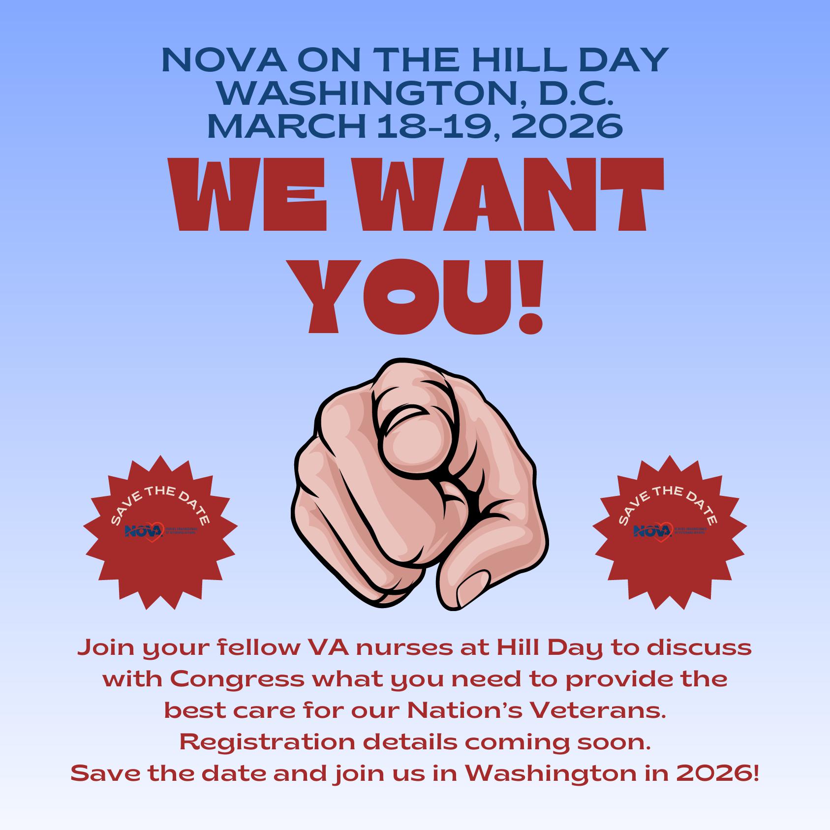 Hill Day is an empowering opportunity for VA nurses from across the country to come together and advocate directly with Congress about what you need to continue delivering the highest-quality care to our Nation’s Veterans. Your voice, your stories, and your expertise make a real impact—and we want you there with us.